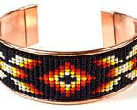 - Cuff Copper Bracelet with Black, Orange Southwest Inspired Pattern!