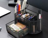 About this item The design is unique, the wire mesh makes it easy to see the materials inside and quickly select what you need, The bottom of the pen holder has a non-slip pad to avoid slipping and scratching. This desktop organizer is an excellent desk accessory for home, office, and school. It can organize small stationery items, scissors, tape, staplers, USB flash drives, erasers, rubber bands, whiteboard pens, rulers, pens, pencils, paper clips, highlighters, markers, glue, and even makeup, color cosmetics, jewelry, lipsticks, keys, and presbyopes and more. Made of high-quality metal, this desktop organizer is sturdy and strong. There are eight compartments in total, of which the drawer can be removed. Its simple and beautiful appearance makes it suitable for various environments, and it is a good choice as a gift for business people. Package: 1 pack Desk Organizers and Accessories with Pencil Pen Holder Supply 8 Compartments and 1 Pullout Drawer
