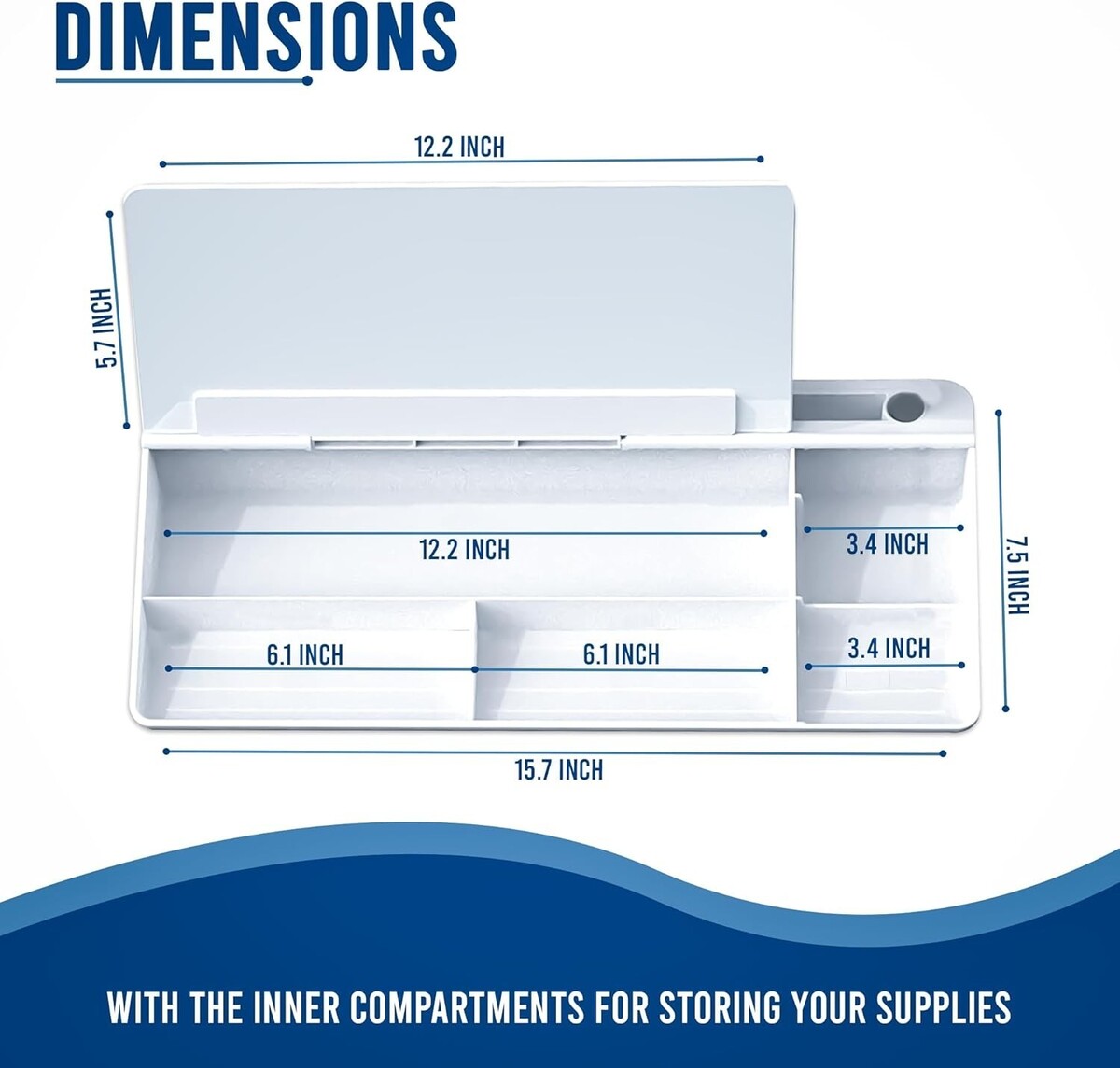 Brand New in the Box! Desktop White Board with Basic Calculator ? Glass Desktop Dry Erase Board ? Home Office Study Essential Desktop Buddy ? Dry Erase Board with Phone/Tablet Slot ? Includes Sticky Notes and 8 Markers FEATURES: ??CROSSROADNY-ECOM DESKTOP WHITEBOARD?- Desktop buddy is the ultimate desktop accessory to increase your productivity and organize your desk space, including sticky notes and eight dry erase markers. The Desktop Whiteboard is the alternative solution to using many paper to note down remainders and ideas and to arrange your workspace area perfectly. The desk board has a stain-resistant surface, which gives you countless erases. ??DESK DRY ERASE BOARD MATERIAL?- Versatile dry erase computer board is made up of durable and lightweight plastic material, and smooth glass is built to last. Deskboard buddy dry erase is easy to wipe, which helps to maintain their appearance over time built to last. Desktop buddy angles make it easy to read, write and rewrite. ??DESK WHITE BOARD CONVENIENT SIZE ?- Desk dry erase board is in a perfect size (16.4''x6''x1.87'') to easily fit in between desktop and keyboard. Desk board buddy dry erase small enough to fit on a desk, tabletop, or even a bookshelf. Desktop whiteboards take up minimal space and can easily be moved from one location to another. ?? ONE DESK BOARD MULTIPLE USES?- Desktop buddy storage space and printed names of days on keyboard whiteboard glass make it more effective for your workspace. You can note down a full week of important things to do and can store all your small desk accessories. The desktop whiteboard has tilt slots to keep your phone/iPad or book in it. GREAT ITEM AT A GREAT PRICE!!