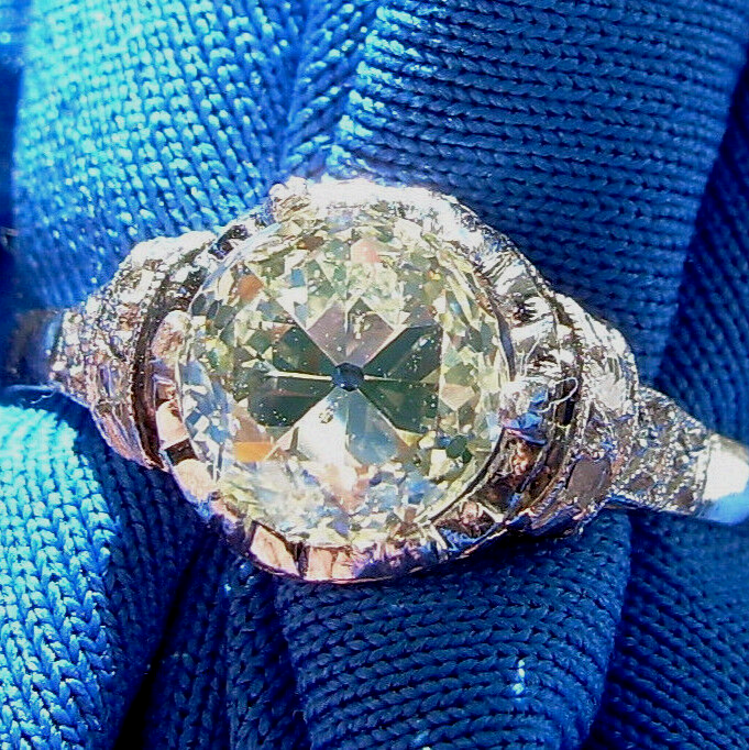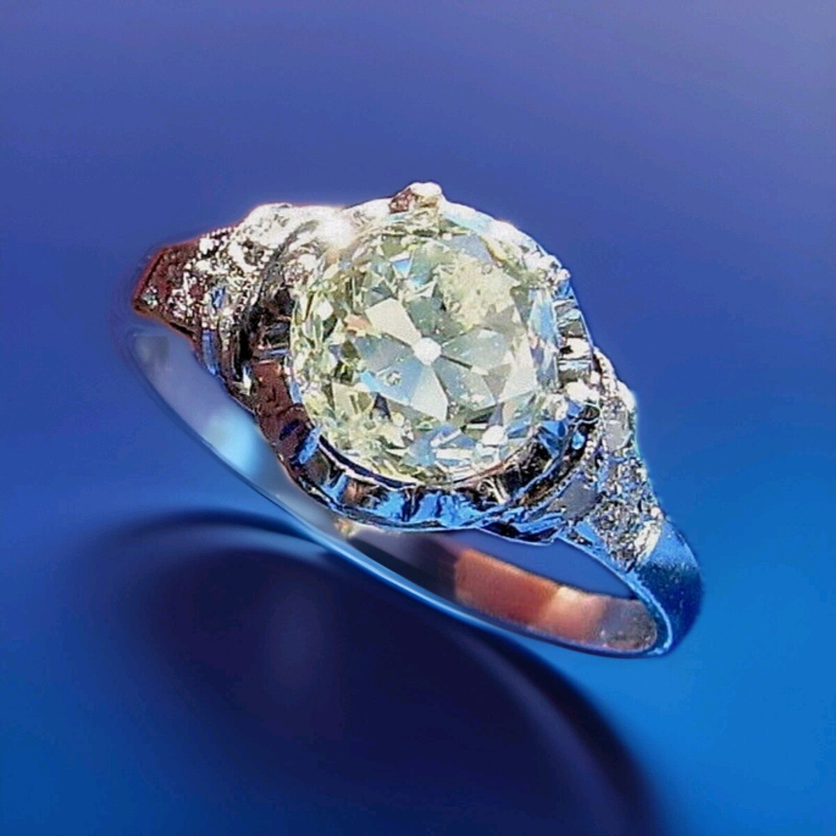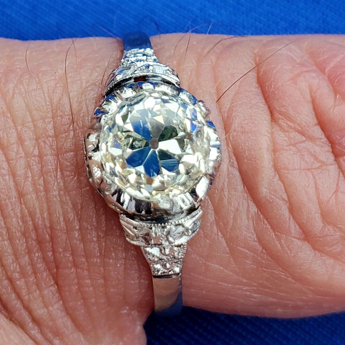 - Earth mined Diamond Cushion Deco Engagement Ring 1.5ct Antique Platinum Solitare