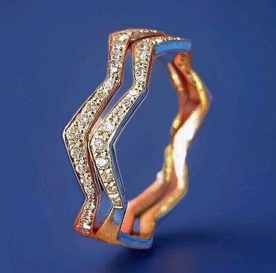 YELLOW GOLD AND ROSE GOLD MATCHING SET DIAMOND WEDDING RING.