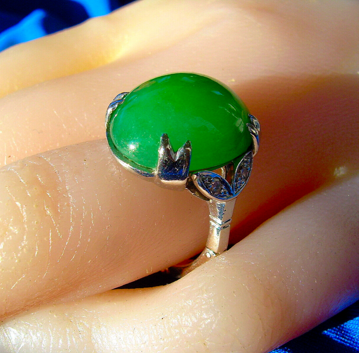 - Earth mined Green JADEITE Jade Antique Engagement Ring Deco Diamond 14k Gold