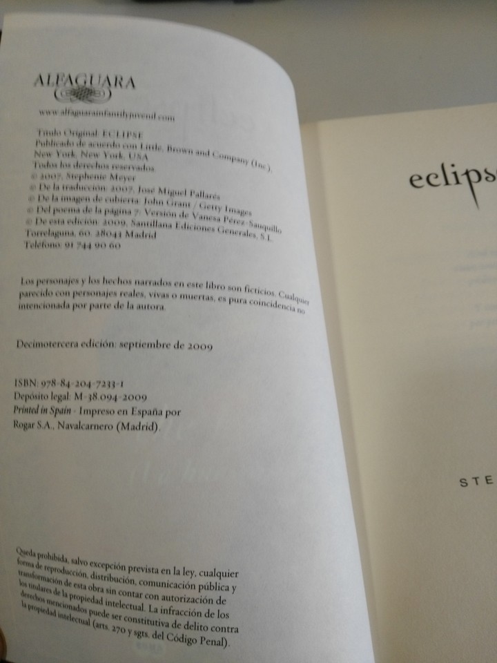 Eclipse Twilight Stephenie Meyer Book Alfaguara Cover Paperback 623 Pages Am