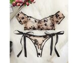 Primary image for Elegant Sheer Floral Off-Shoulder Delicate Mesh Crop Top Lace Lingerie Set S