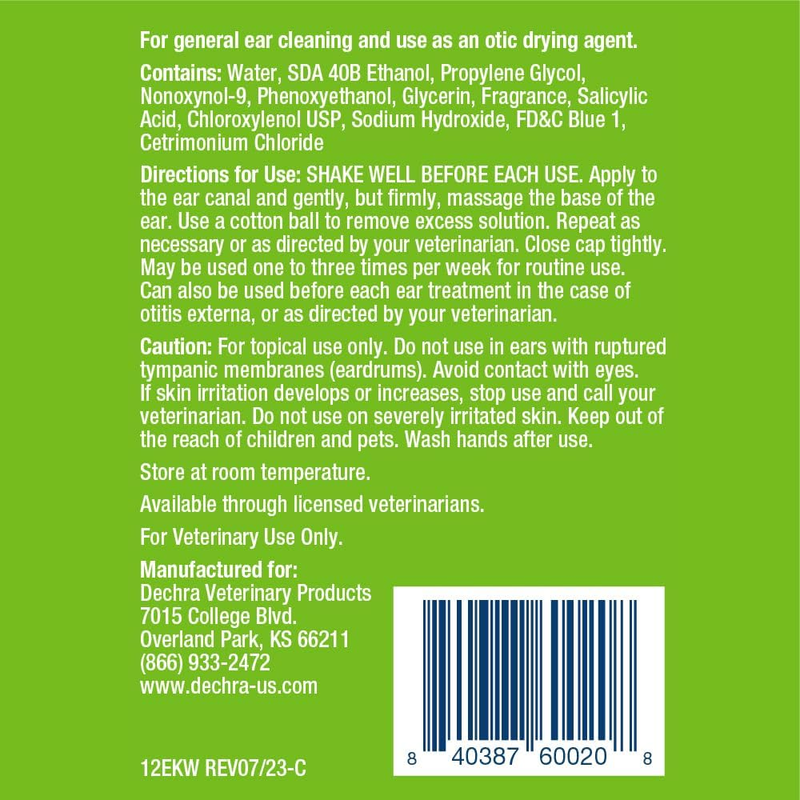 For general use ear cleaning and use as a drying agent for dogs and cats.