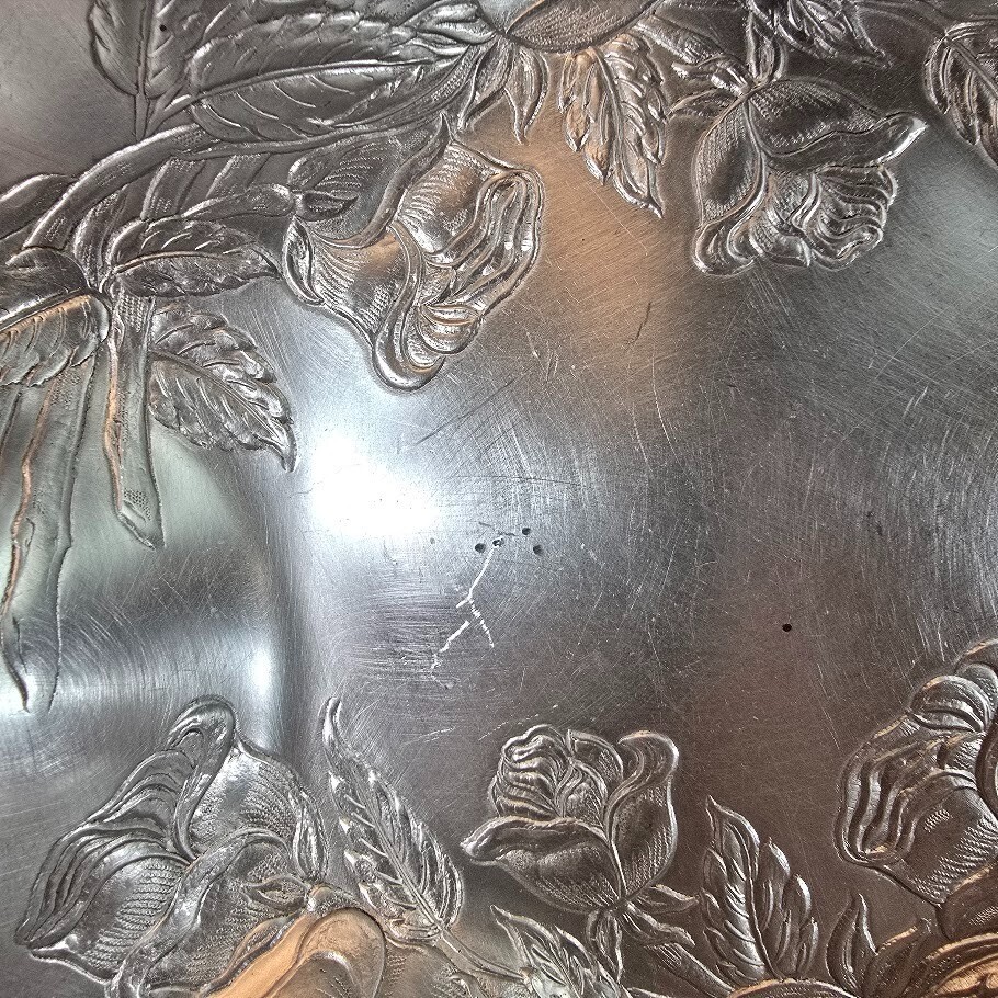 Farber Shlevin Hammered Aluminum Tray Scroll Rose Motif Hand‑Wrought Vintage