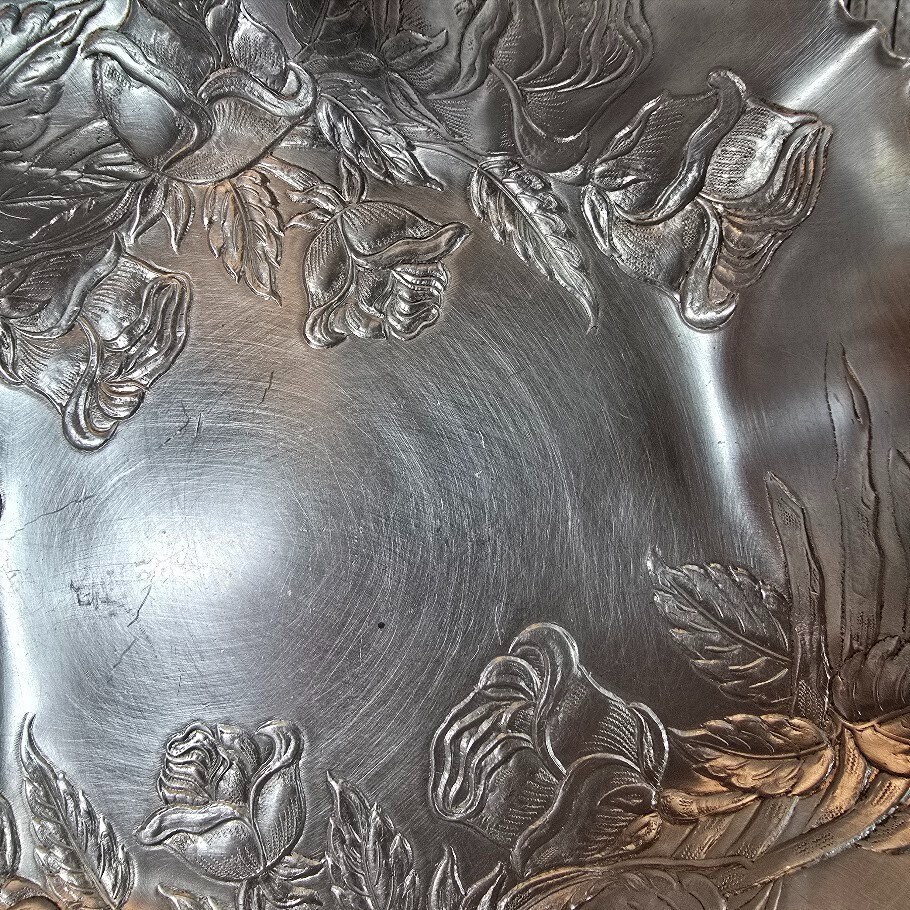 Primary image for Farber Shlevin Hammered Aluminum Tray Scroll Rose Motif Hand‑Wrought Vintage