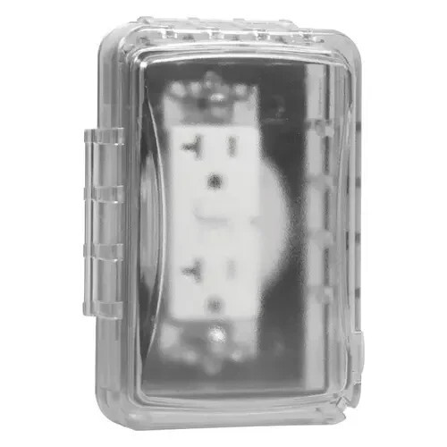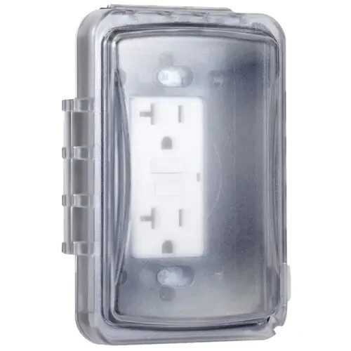 This flip cover is used by electricians and contractors on residential and light commercial jobs where code-compliant, in-use weather protection is required for outdoor or damp-location outlets?such as patios, kitchens, garages, pool areas, and construction sites. Its clear design allows instant visual verification of GFCI status (tripped/reset), while the lockable flip door supports safety compliance in rental properties, schools, and public facilities. The tool-free Quick-Fit system dramatically reduces install time in high-volume builds, and the U-Fast adaptability future-proofs the cover for device changes without replacement. Trusted for inspections and long-term performance, the MM110C combines safety, speed, and versatility?ensuring reliable protection and professional-grade results in demanding environments.
