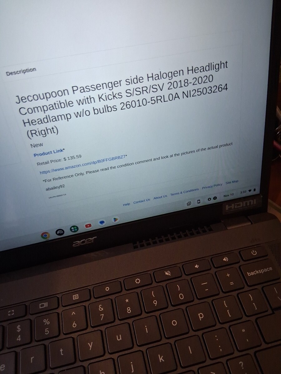 - For 2017 2018 2019 2020 Nissan Kicks Halogen Right Passenger Headlight Headlamp