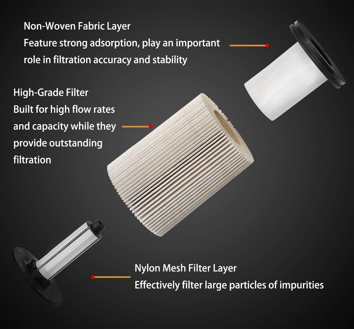 The diesel filter has went through rigorously testing so that you will get a fairly reliable fuel filter, features multi-layer filter and superior sealing components to ensure leakage resistance and extreme durability under various operating conditions