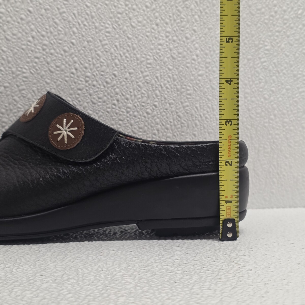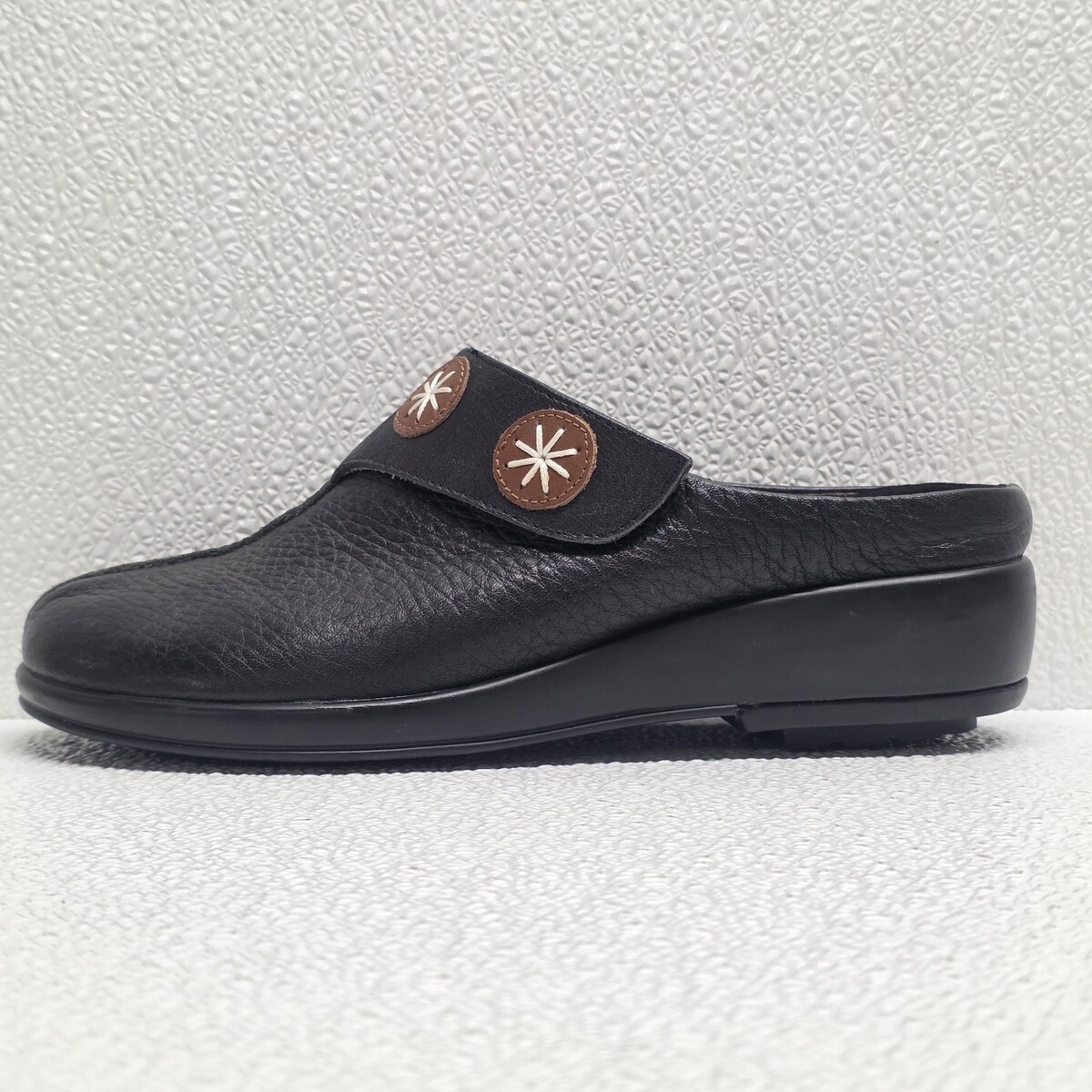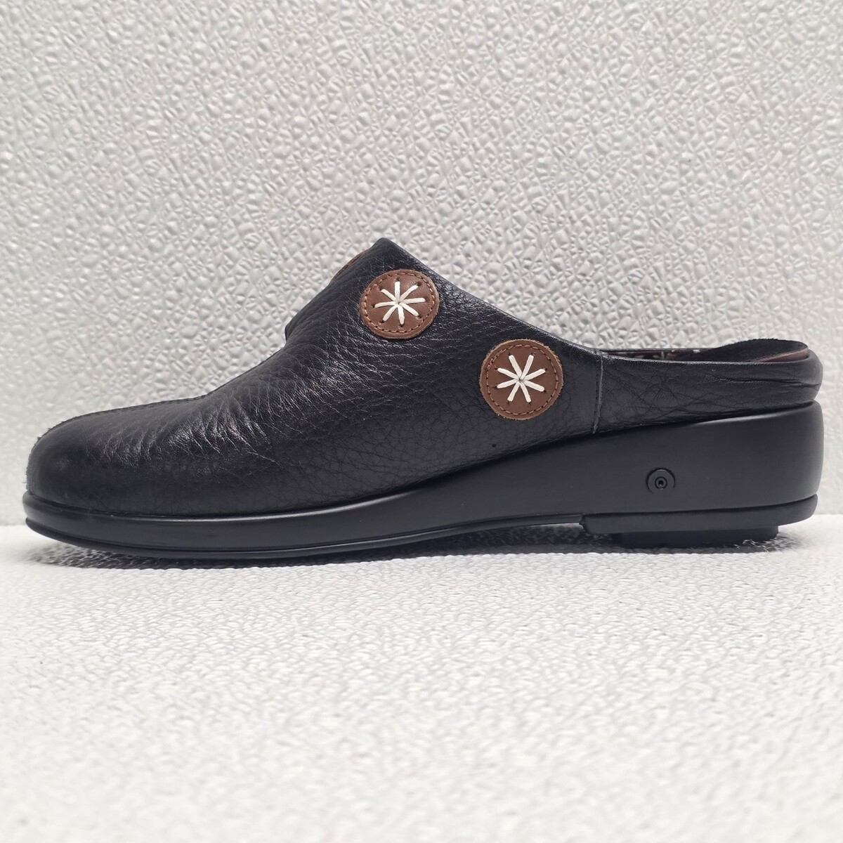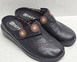 G-Defy Black Pebbled Leather Brown Accents Mule Slip On Clog Shoes Size 7