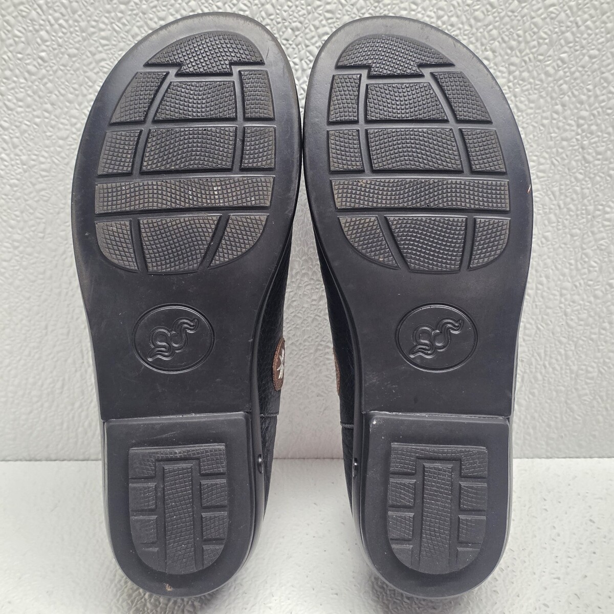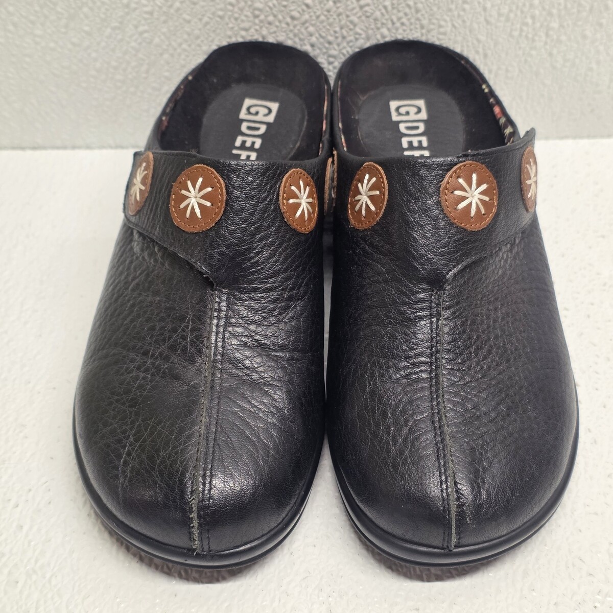 - G-Defy Black Pebbled Leather Brown Accents Mule Slip On Clog Shoes Size 7