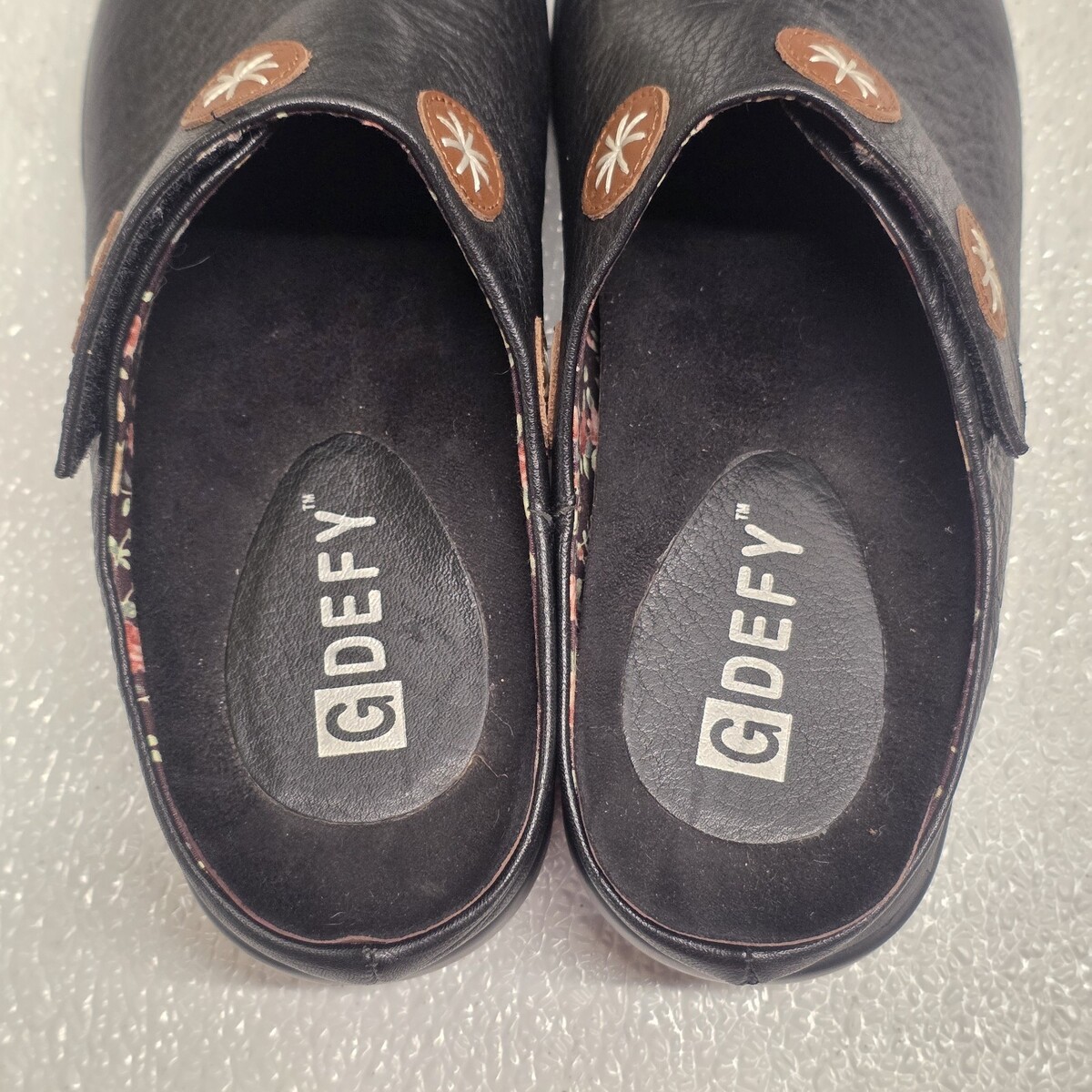 G-Defy Black Pebbled Leather Brown Accents Mule Slip On Clog Shoes Size 7. See images for condition. Images show actual shoes that will ship.