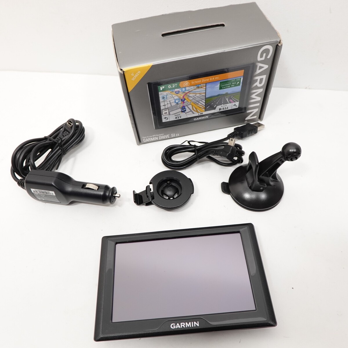 Garmin Drive 51 EX 5.0 inch GPS Navigator Black Bundle OEM Box Power Cord Mount