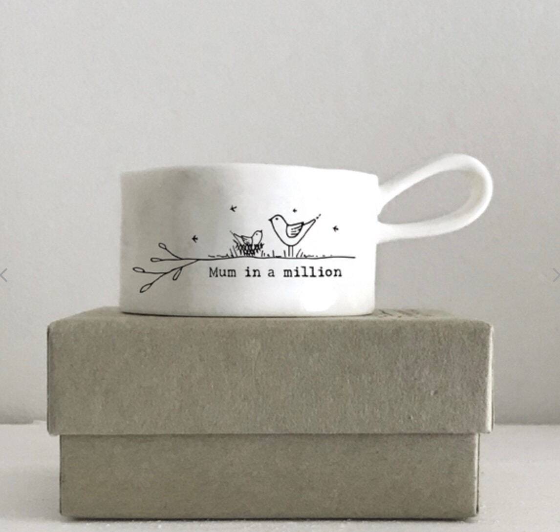 - Handled "Mum in a Million" Porcelain Tea light Holder