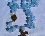 This serene rosary features 8mm frosted sky-blue glass beads, each hand-linked with gold-tone wire for a gentle and elegant finish. The calming blue tones give a sense of purity and peace. A gold-tone ornate crucifix and a Miraculous Medal centerpiece complete this beautiful devotional piece, making it perfect for prayer, reflection, or gifting.