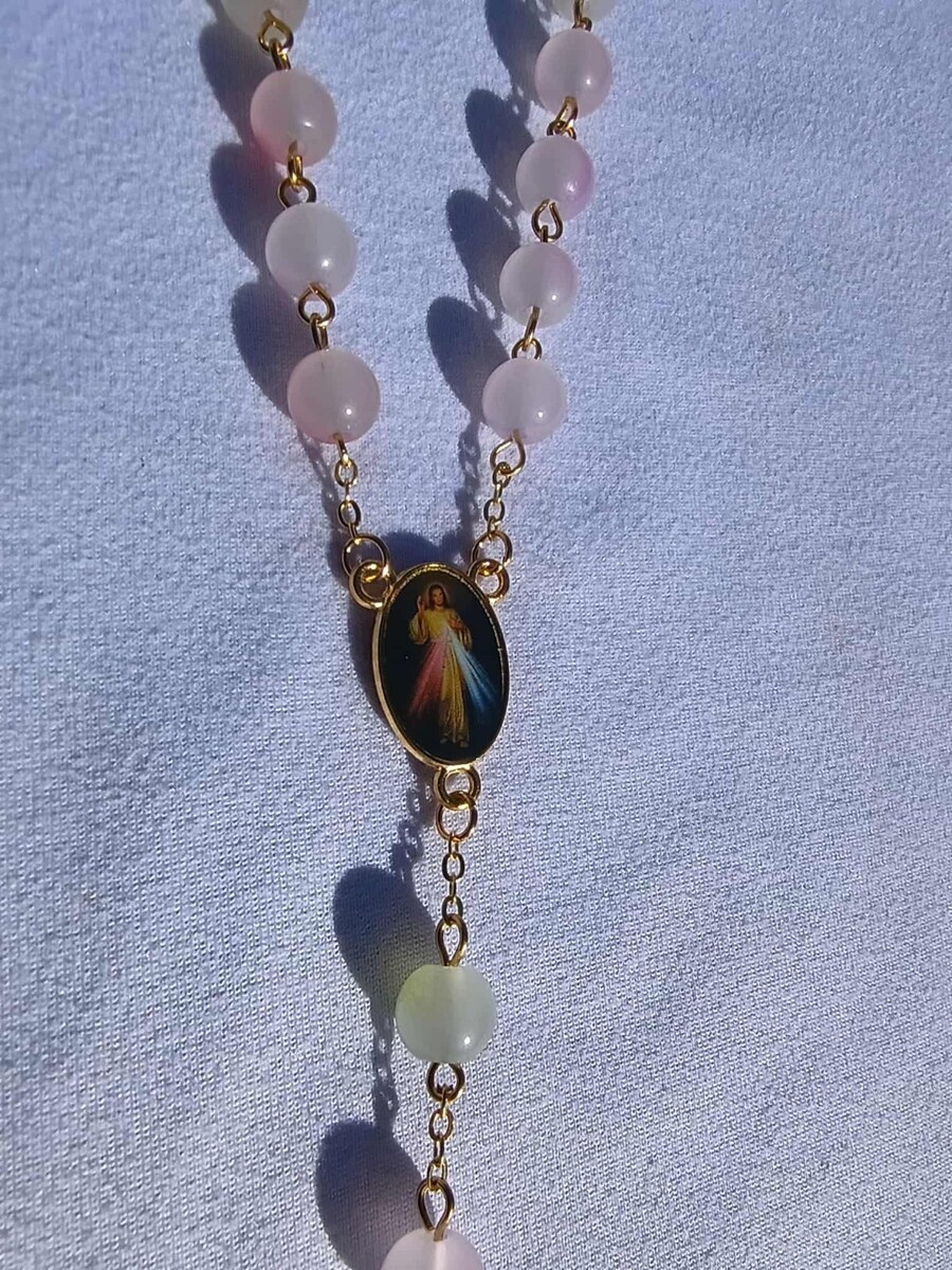 A gold-tone crucifix adds a warm, elegant finish, while the centerpiece depicts Christ in radiant compassion. This rosary feels like holding a little piece of heaven in your hands ? perfect for prayer, meditation, gifting, or adding to a cherished collection.