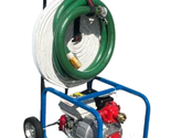 Heavy Duty Standup Cart that conveniently holds and transports 100' of Fire Hose and Suction Hose