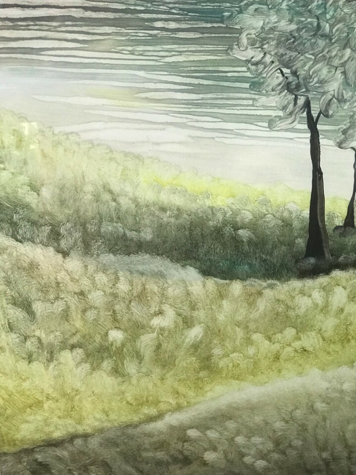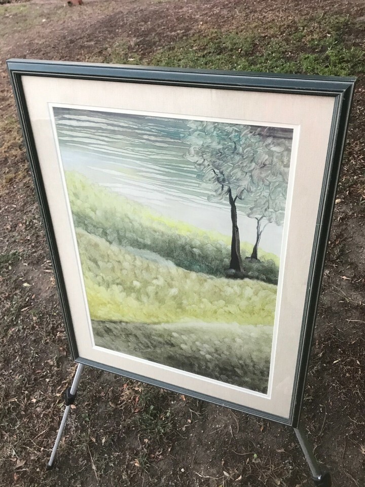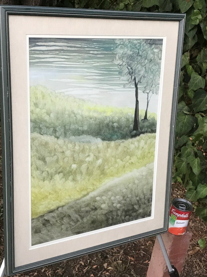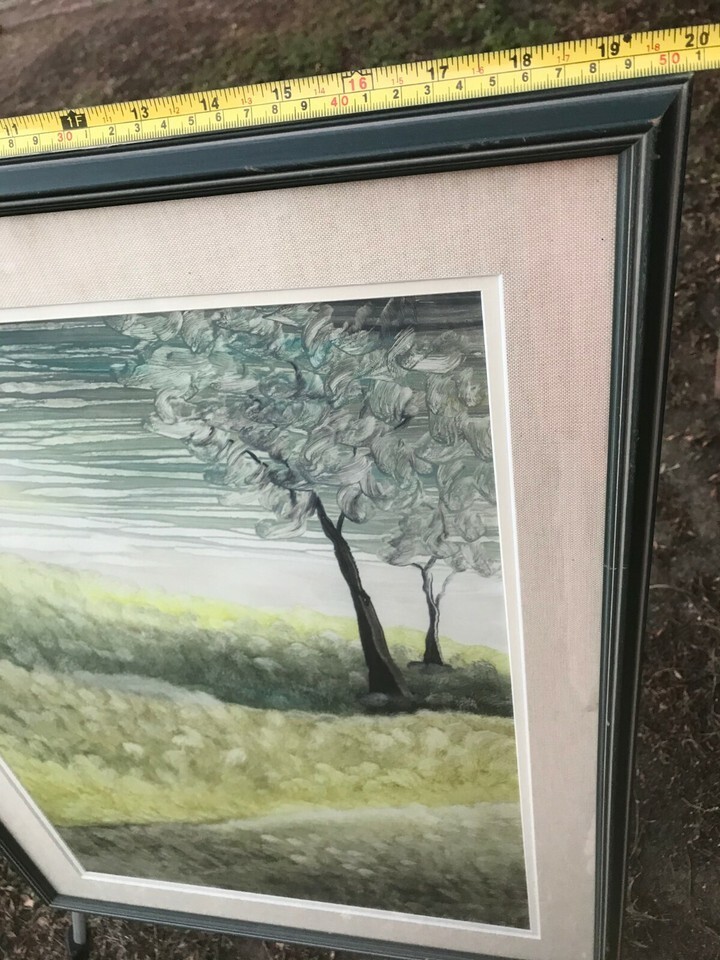 HOANG TRONG TIEN (1953- ) "Two Trees" Acrylic/Gouache Modern Surrealist Abstract Landscape Matted and Framed Size: 26 in x 20 in Excellent Condition w/ Deep Vibrant Colors ============================================================================= The artist: Hoang Trong Tien was born in 1958 in Hue, Vietnam. Tien began painting in 1975. Prior to beginning his career in painting, Tien taught chemistry. He was an in-house artist for Central Vietnam Cinematic Company from 1978 until 1981. In 1979, Tien directed the Hoi An training program for the Young Artists' International Competition. He schooling and training included: Quoc Hoc School at the university (subject painting) 1977 Completion of studies, 1977-1979 Taught painting in Quang Nam-Danang. 3-year painting course at Quang Nam-Danang University, 1979 Head of the training program for the "International Young Painters" competition, Quang Nam-Danang, 1979-1981 painter at the Central Society of Cinematography. Vietnam, Danang, Vietnam, In 1994 Hoang celebrated the opening of the own gallery in Hoi An, Vietnam. Later, the Museum Villa Montalvoll purchased 40 of Hoang's paintings for an exhibition in San Francisco, USA. The MVM gallery is well known among European art collectors. In 1996 Hoang had a personal exhibition in Kuala Lumpur, Malaysia. Again in 1998, a personal exhibition in Manila, Philippines and then in 2001 a group exhibition in HoiAn with well-known painters from Ho Chi Minh City. Tien's work is as unique and cheerful as his personality. He greets visitors enthusiastically and will spend endless time sharing his knowledge and wisdom. Tien incorporates varied use of his hand, knuckles, fingers, and nails to create his highly individualized style, which facilitates his use of light reflection and multiple contrasting stokes. --- Email or Text any Questions.....thank you. Due to special packing necessities for framed art items, shipping times may take a few days longer depending on the item and shipping destination location. Email through for more information.