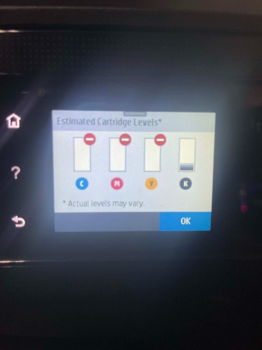 ? Ink Status: No ink / needs replacement cartridges