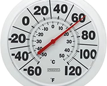 Check temperatures at a glance with the Springfield Indoor Outdoor Big and Bold Dial Thermometer. Featuring an 8-inch dial with large, easy-to-read numbers, this classic thermometer is ideal for patios, gardening, greenhouses, or kitchens. Its wireless design allows versatile placement?hang it inside or outside?while the weather-resistant construction withstands seasonal changes. The precise mercury-free gauge measures from ?40F to 120F, delivering accurate readings in all conditions. A built-in mounting hook lets you display it conveniently, and its white frame blends seamlessly with any decor. Whether you're monitoring outdoor conditions or tracking temperature-sensitive environments, the Springfield thermometer combines nostalgic style with reliable performance to keep you informed year-round.