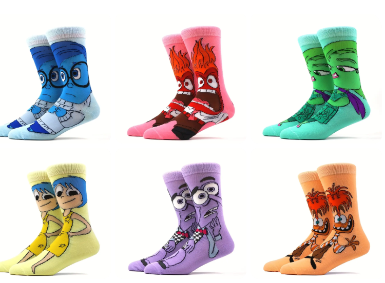 Bring home your favourite Inside Out emotions with this adorable 9-piece collectible toy set, now with a FREE pair of colourful cartoon socks included!