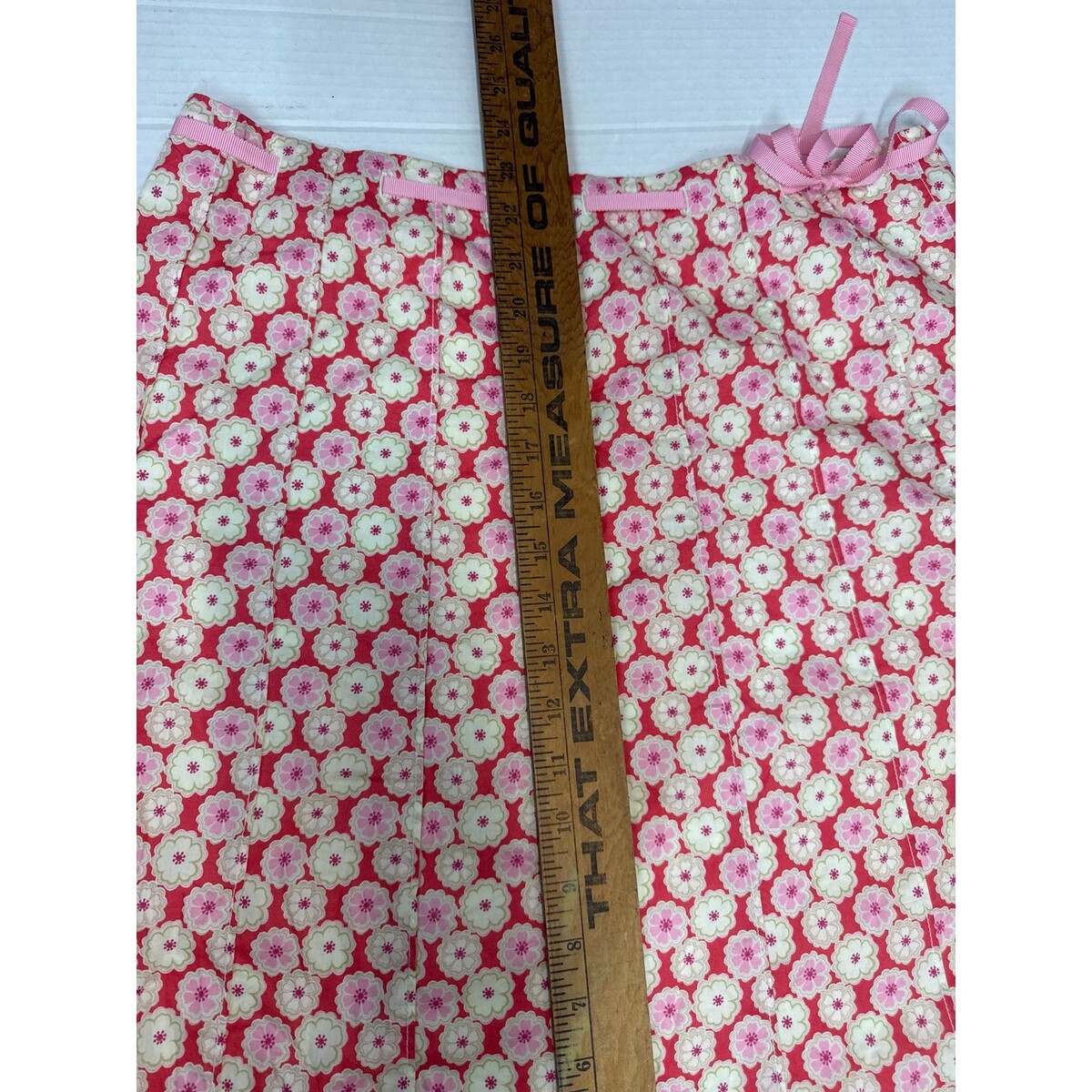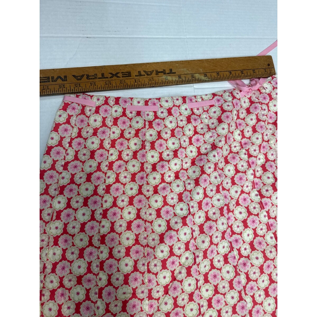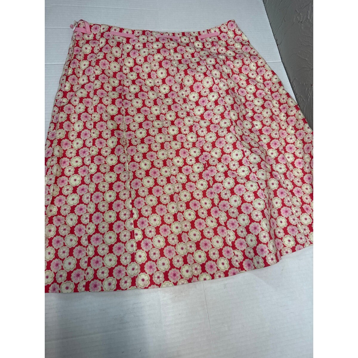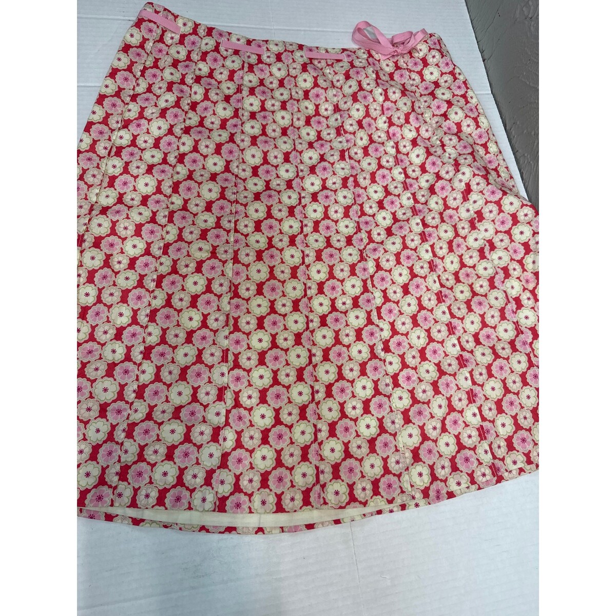 - J.Crew Spring Summer Skirt Pink White Adjustable Waist Floral Cotton Womens 10