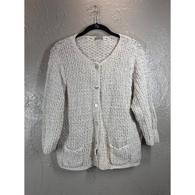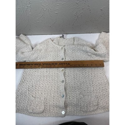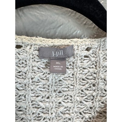 - J Jill Oatmeal Linen Blend Cardigan Sweater Mother Pearl Button Open Knit XL