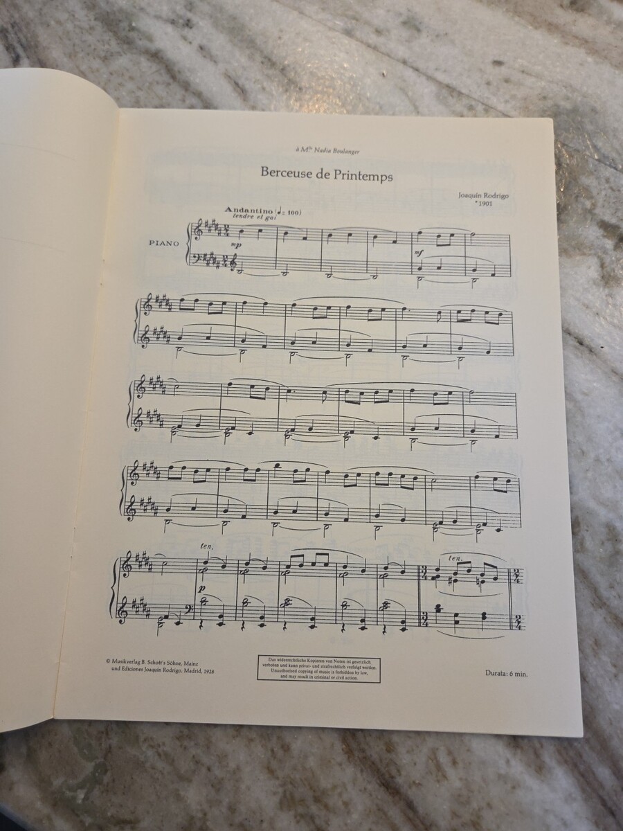 Joaquin Rodrigo Deux Berceuses for Piano sheet music Schott. Condition is Very Good. Shipped with USPS First Class.