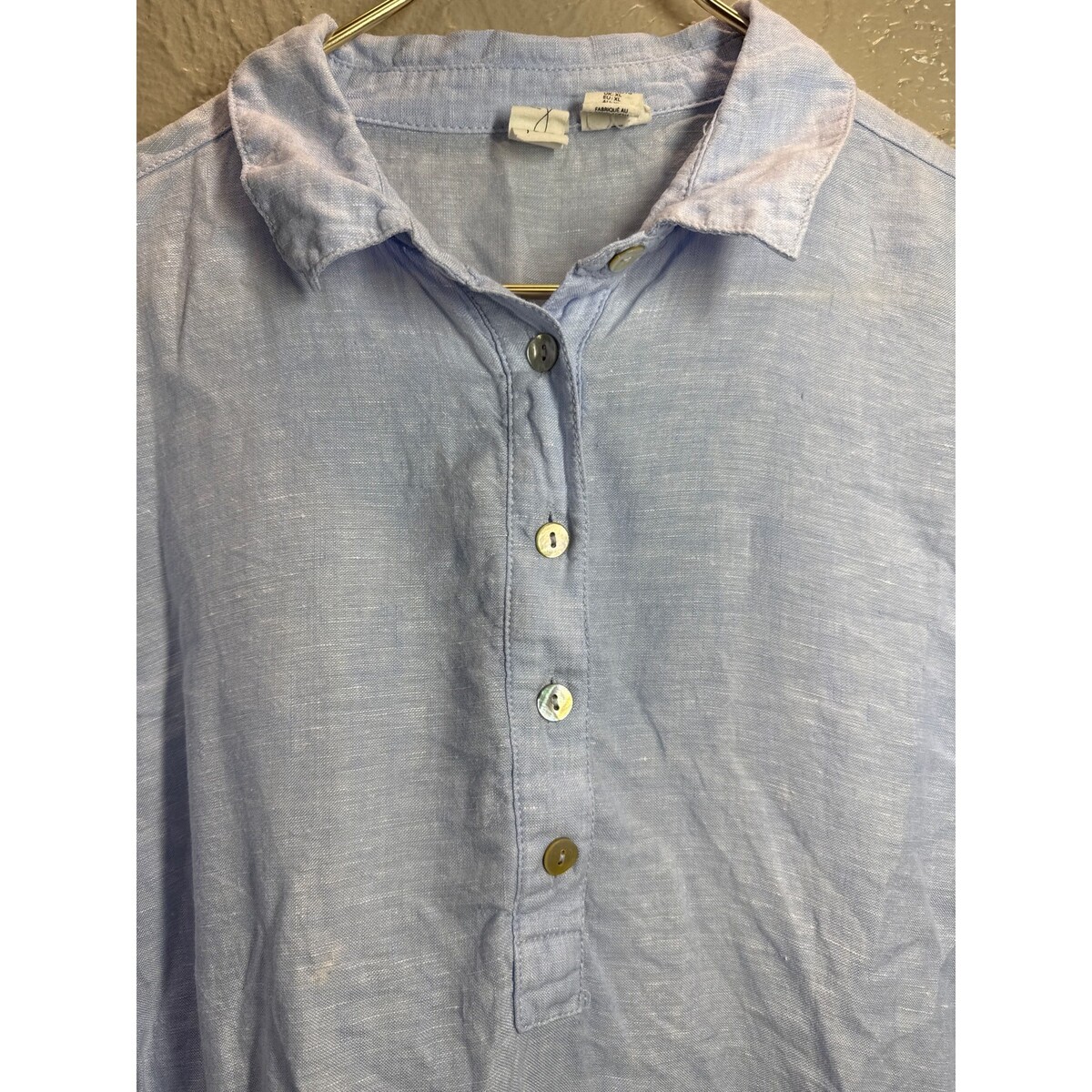- Joie 100% Linen Blouse 3/4 Button Long Sleeve Roll Tabs Light Blue Size XL