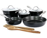 - Kenmore 10-Piece Black Aluminum Nonstick Cookware Set with Wooden Utensils