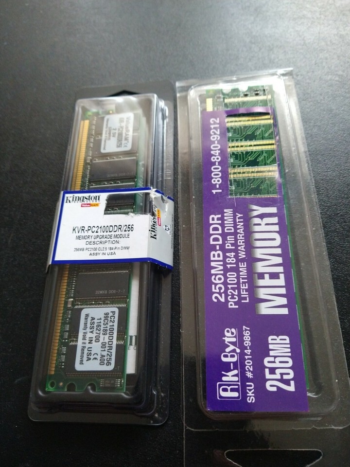 Kingston RAM Memory Module 256MB PC2100 CL2.5 non-ECC 184 Pin KVR266X64C25/256-R. I am also adding a RK Byte 256MB DDR memory.