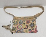 Kipling Floral Hearts Crossbody Purse Beige Tan Pink Blue Green With Monkey