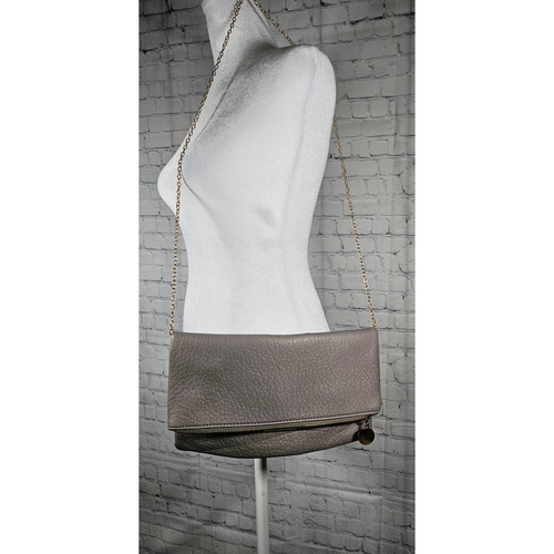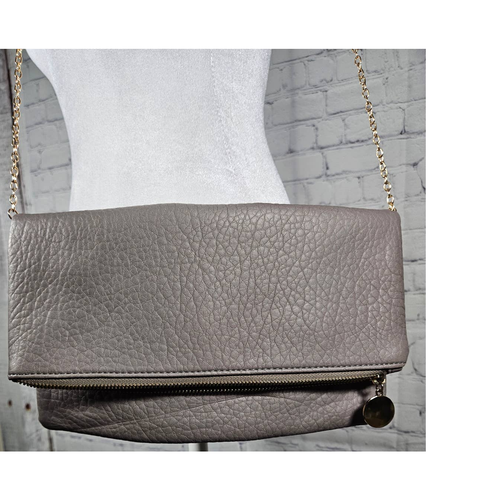 Kiran Women's Foldover Crossbody Clutch Gold Chain Shoulder Strap Gray