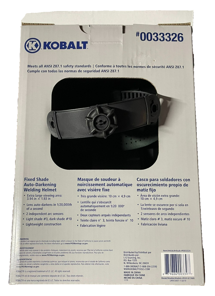 - Kobalt Fixed Shade Auto-Darkening Welding Helmet #0033326 – NIB