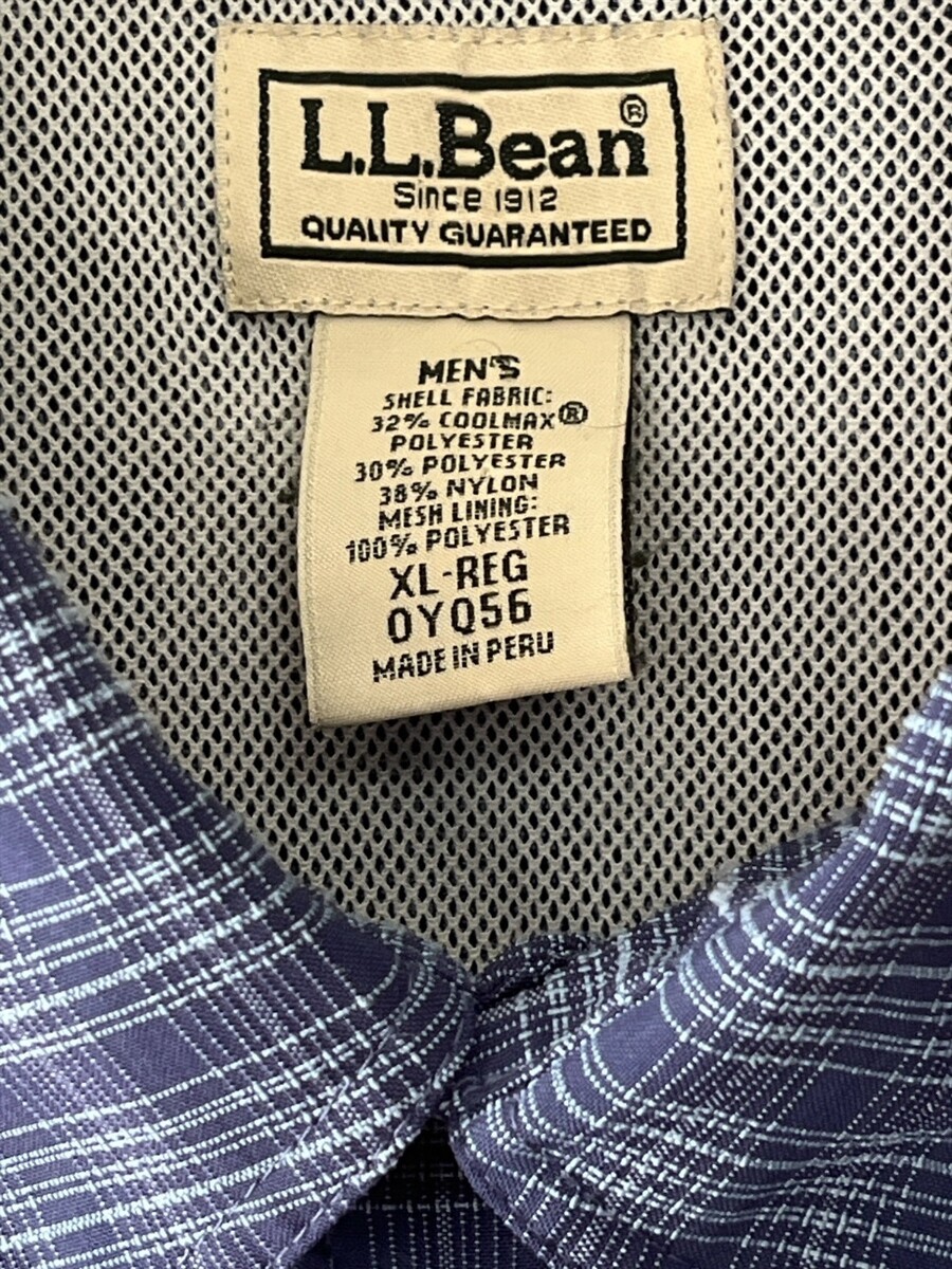 - L.L.Bean Men’s CoolMax Short-Sleeve Fishing Shirt XL Regular – Blue Plaid Vented