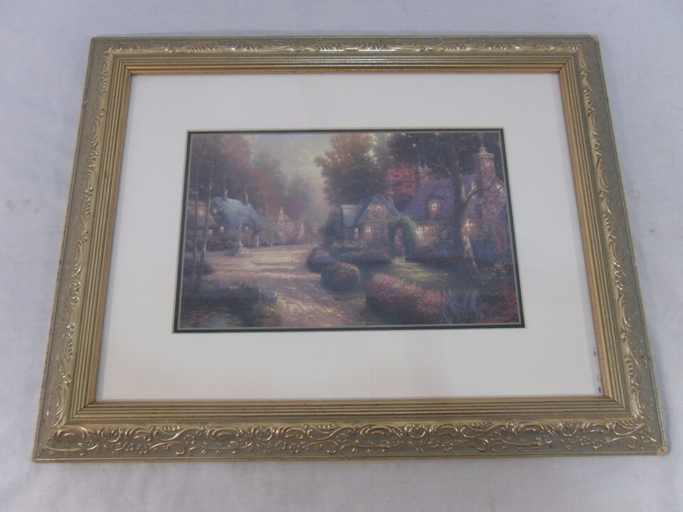 Thomas Kinkade's Beautiful "Cobblestone Lane" Painting with elegant Frame Size: 15 inches x 19 inches Color:N/A Condition: Excellent condition. Framed/Glass cased and well cared for. Defects: None. IF YOU FIND ANYTHING WRONG WITH THIS LISTING , PLEASE MESSAGE ME RIGHT AWAY AND I WILL FIX IT, OUR GOAL IS TO 100 PERCENT SATISFY YOU. Thank You for looking at my Store. I am a United States Army Veteran and our Store is Veteran Owned and we count on an honest transaction. We have a no hassle return Policy. It?s really simple if you don?t like it please return the item and I will issue you a refund. I have quickly learned that Customer Satisfaction is the number one Priority. My Store is open for Business and I invite everyone to take a quick look at what I have...Just click here and see all that I have View more great items