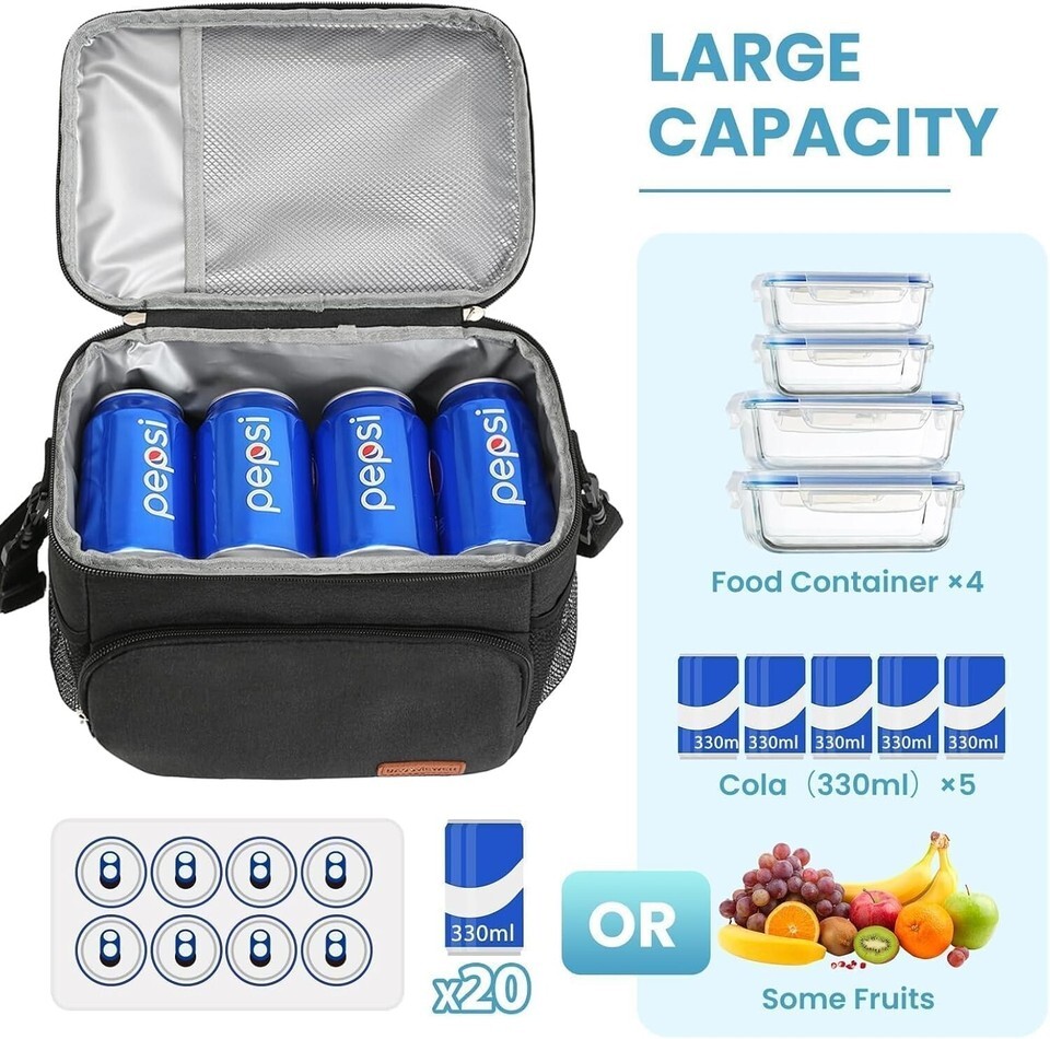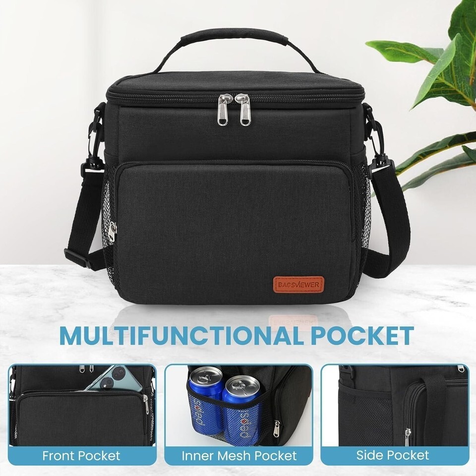 ?PORTABLE VERSATILE?No one wants to carry a mens lunch box that is challenging to handle. Our large lunch bag is designed with a long comfortable shoulder straps with a handle that can be alternatively used as a sling bag or a handheld bag, and double dual zippers to ensure smooth opening. So you can easily bring it to work, office, picnic, or anywhere you want.