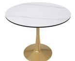 LeisureMod 35" Round Dining Table, Sintered Stone Top & Gold Pedestal Base Mid-C