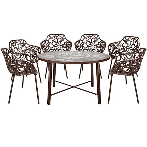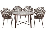 Introducing the stunning and captivating Devon Outdoor Patio Dining Set, a must-have for modern furniture enthusiasts. With its attractive flower design, this set is a true asset that will enhance the beauty of any home. This Dining Set excels when it comes to quality. The aluminum frame not only provides exceptional strength but also ensures the table and chair remain lightweight and easy to move around. This makes it convenient for rearranging furniture or accommodating additional guests. The Powder coated finish not only enhances the chair's visual appeal but also protects it from scratches and wear, guaranteeing its longevity. The table and chairs also come with plastic cap floor protectors, ensuring that your floors remain unscathed even when the chair is moved or rearranged. Meanwhile, the high-quality tempered glass top is a standout feature of the dining table. It not only adds a sleek and elegant look to the table but also provides a sturdy and reliable surface for dining. This dining set is UV-protected, making it resistant to the harmful effects of direct sun exposure. This feature ensures that the item's color and finish remain vibrant and intact, even when placed in areas with prolonged sun exposure. The Devon Outdoor Dining Set is more than just a furniture piece. They are expressions of style, elegance, and quality. The attractive flower design, durable construction, and versatility make them ideal choices for both indoor and outdoor settings. Elevate your decor and create a captivating dining area with this set. Create lasting memories with your loved ones as you gather around this exquisite dining set.