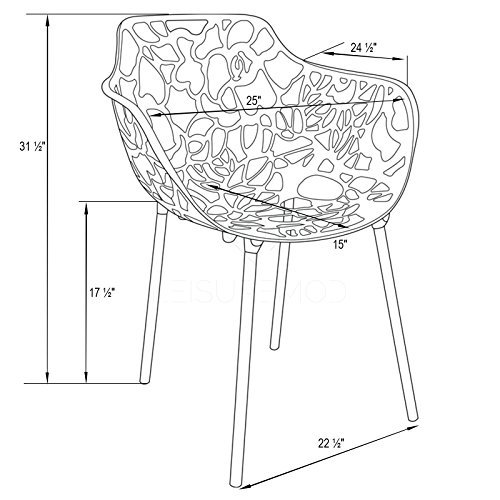 Table: 28.35" H x Diameter 47.25" Glass Top Thickness 5MM (.19)" Edge thickness is 5MM" Width 1.18" Leg Height 27.25" Space between Legs 33.3" Chair: Full Height 31.5" Height Until Seat 17.5" x Full Width 24.5" x Full Depth 21.5" Seat Dimensions: Seat Width 25" x Seat Depth 16.5", Floor to Arm 27" Arm Width 24.5 Arm Length 12 Back 15.5"H x 16.5" W