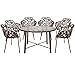 The dining set features an attractive flower design, adding a touch of charm and elegance to your outdoor or indoor space. The unique and eye-catching design enhances the overall aesthetics of your home. The dining table's high-quality tempered glass top adds a touch of sophistication and provides a durable and reliable surface for dining, combining elegance with practicality. The aluminum frame of the chairs and table provides superior strength, ensuring the set's longevity and ability to withstand daily use. The chairs are stackable, allowing for easy storage and saving space when not in use. You can conveniently stack multiple chairs together, reducing clutter and maximizing space. The dining set is crafted to elevate your outdoor gatherings. Whether it's a party or a simple meal in the open air, this set offers a comfortable and stylish seating arrangement for your guests. The dining set is equipped with plastic cap floor protectors, which prevent scratches and damage to your flooring, preserving its integrity and appearance. The dining set is designed for easy assembly, allowing you to quickly and effortlessly set it up to create a captivating dining area without any inconvenience.