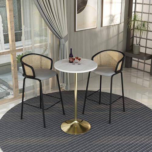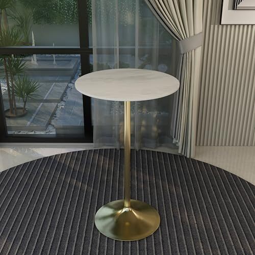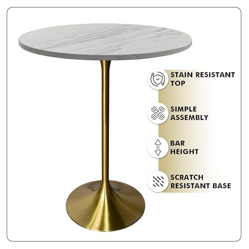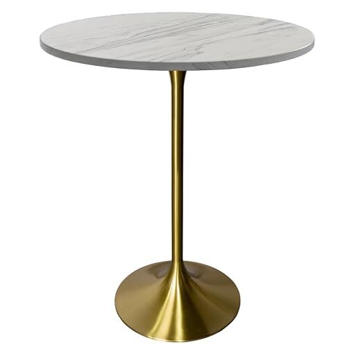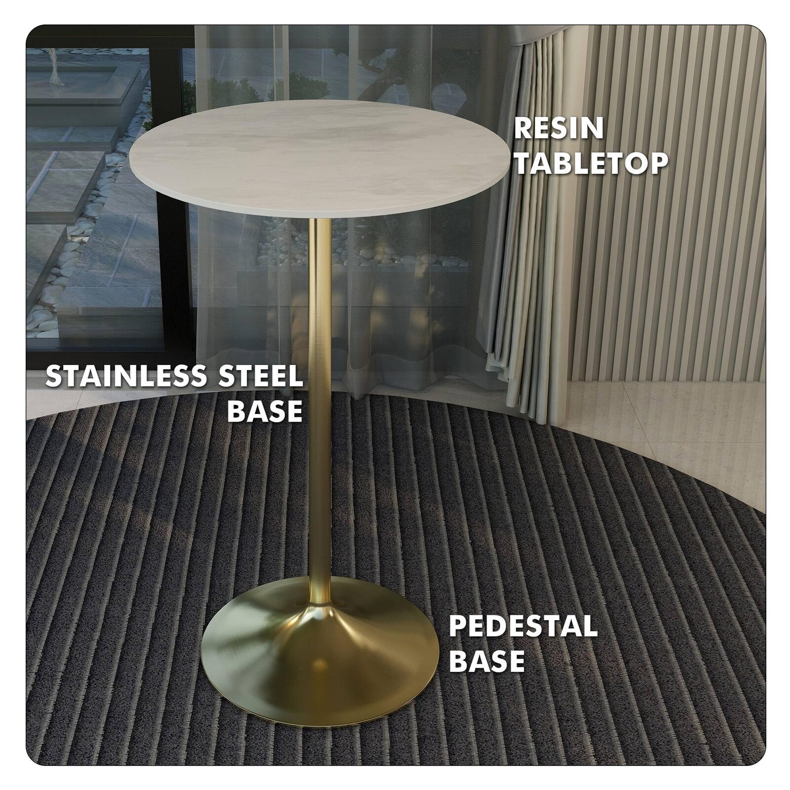 - LeisureMod Round Bar Height Dining Table with Resin Top and Gold Stainless Steel