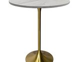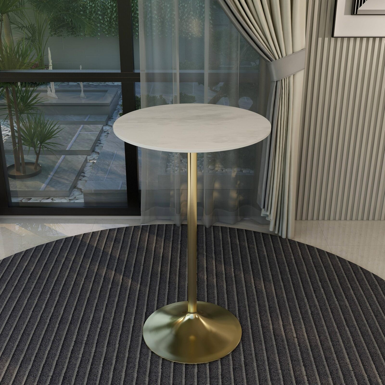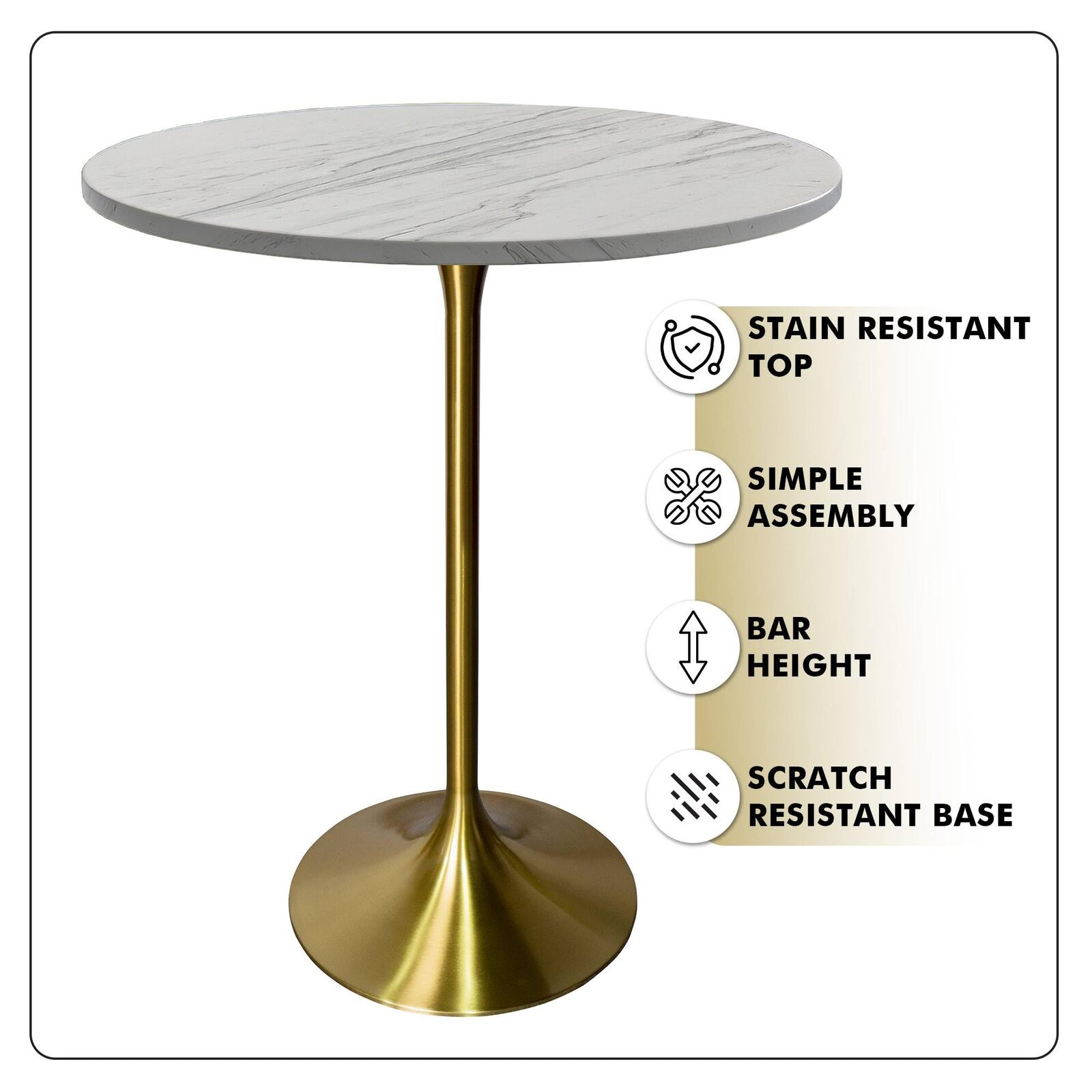 LeisureMod Round Bar Height Dining Table with Resin Top and Gold Stainless Steel