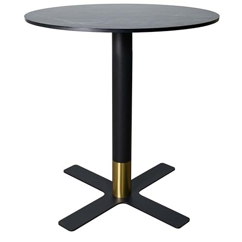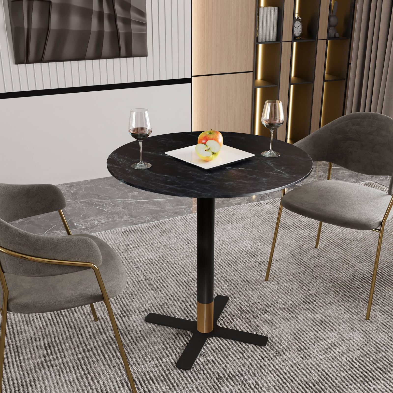 Product description: Add a modern edge to your space with the Vail Round Dining Table. Its sleek MDF top pairs with a striking X-shaped steel base, accented in brushed gold for a refined touch. Built for daily use, the pedestal design offers open legroom and balanced support. Perfectly sized for 2?3 people, it fits effortlessly into cafes, compact dining areas, or cozy workspaces. Quick and simple to assemble?everything you need is in the box.