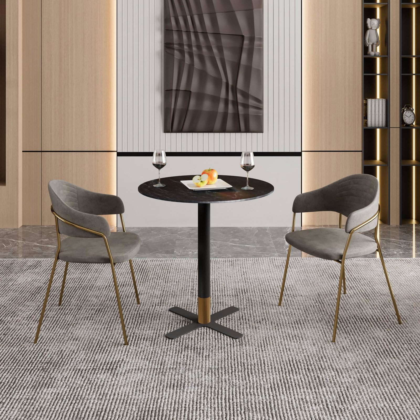 Add a modern edge to your space with the Vail Round Dining Table. Its sleek MDF top pairs with a striking X-shaped steel base, accented in brushed gold for a refined touch. Built for daily use, the pedestal design offers open legroom and balanced support. Perfectly sized for 2?3 people, it fits effortlessly into cafes, compact dining areas, or cozy workspaces. Quick and simple to assemble?everything you need is in the box.