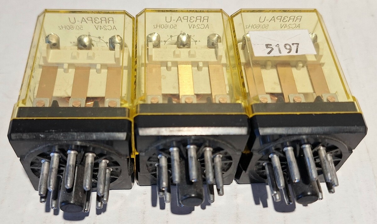 Lot of 3 IDEC RR3PA-UAC24V Power Relay, 3PDT 10A 24VAC, 11-Pin Octal, RR Series