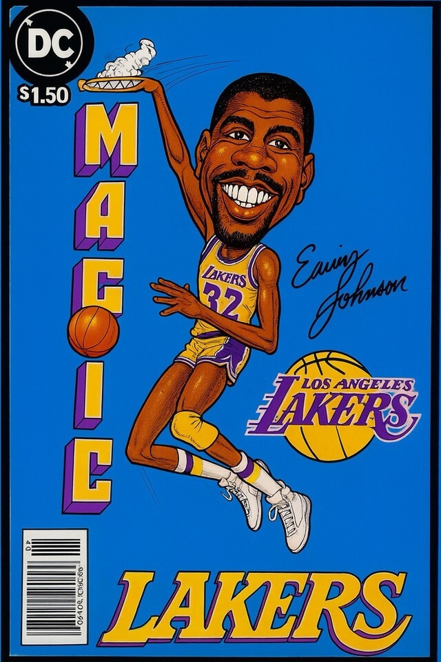 - Magic Johnson Caricature Comic Book Poster Print METAL SIGN 12X8IN From Shirt K