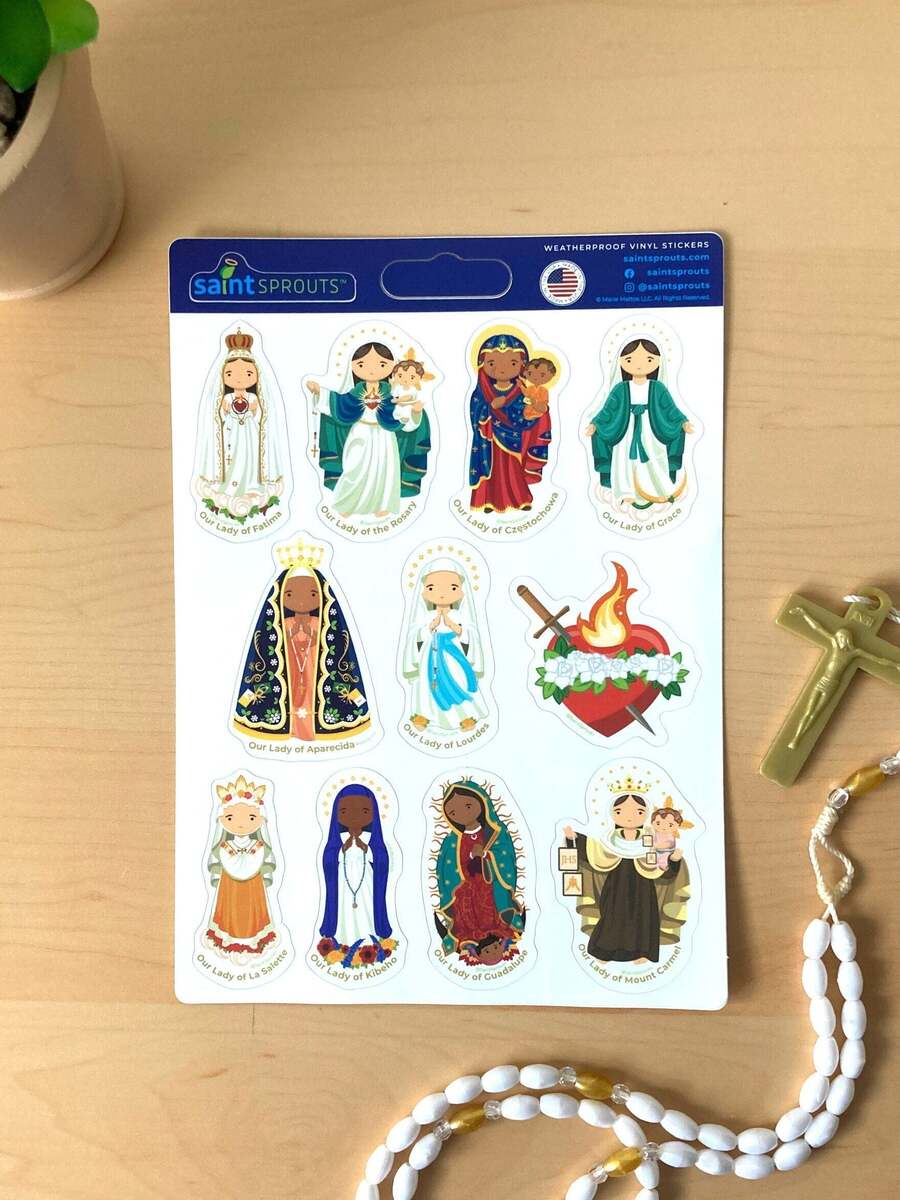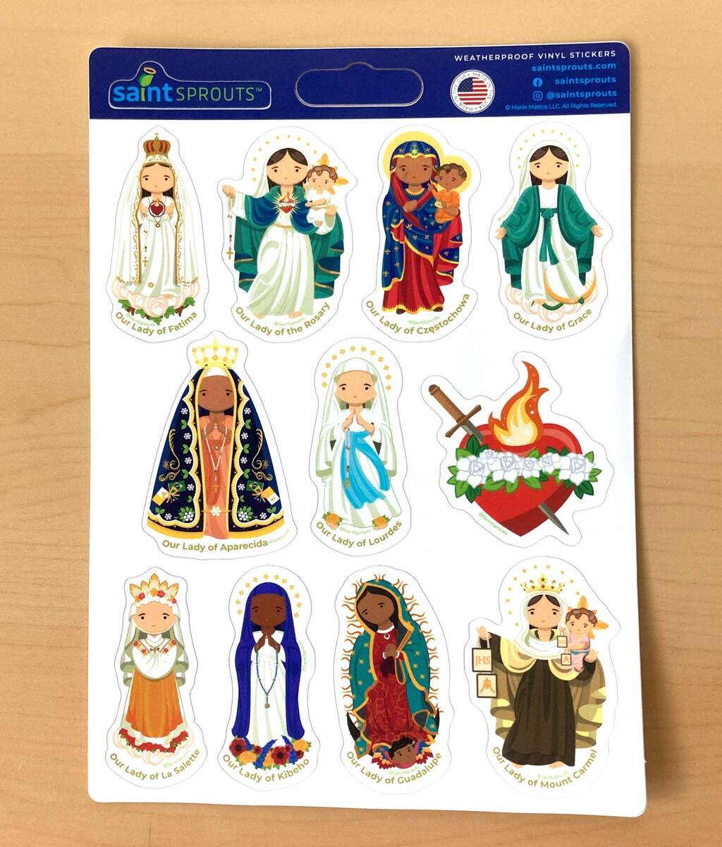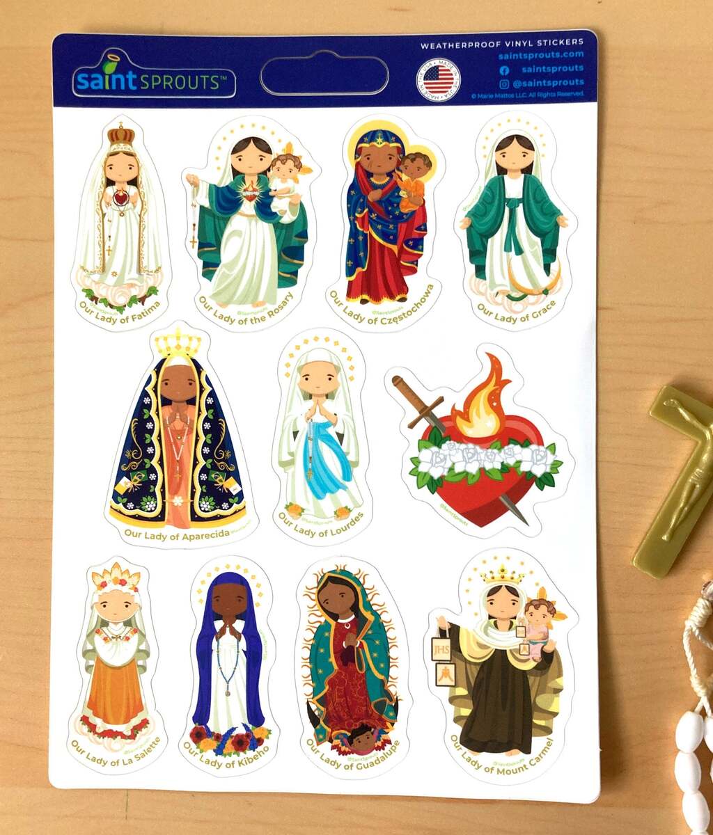 These Marian stickers are perfect for scrapbooks, water bottles, laptops, and more!