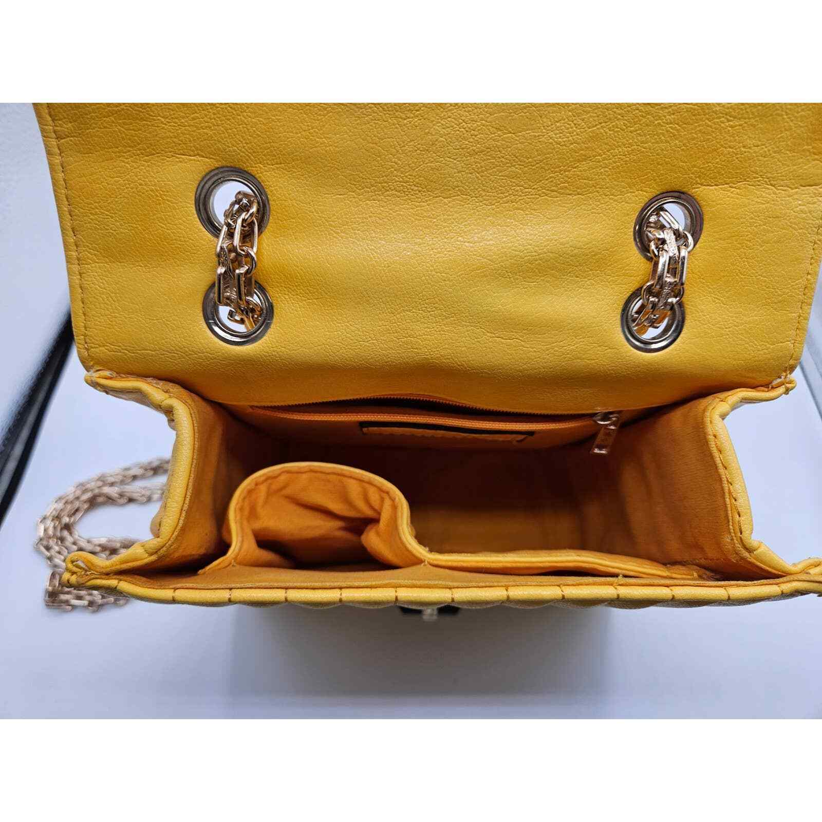 - Mellow World Paola Yellow Quilted Turnlock Chain Handle Purse Bag Handbag